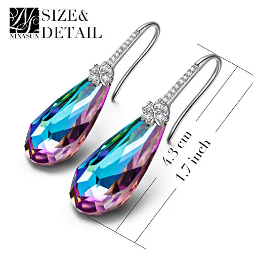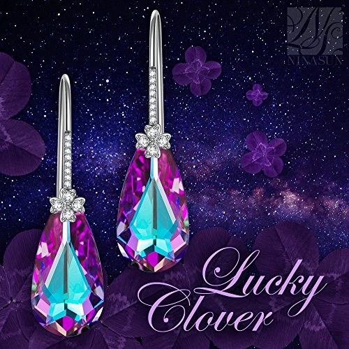 -. Title : Fine Jewelry NINASUN "Lucky Clover" 925 Sterling Silver Teardrop Hook Dangle Earrings Made with SWAROVSKI Crystals