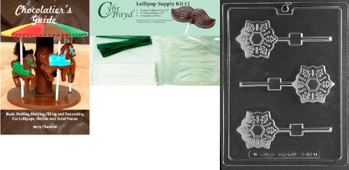 Cybrtrayd Snowflake Pop Chocolate Mold with Chocolatier's Bundle of 25 Lollipop Sticks, 25 Cello Bags, 25 Green Twist Ties and Chocolatier's Guide