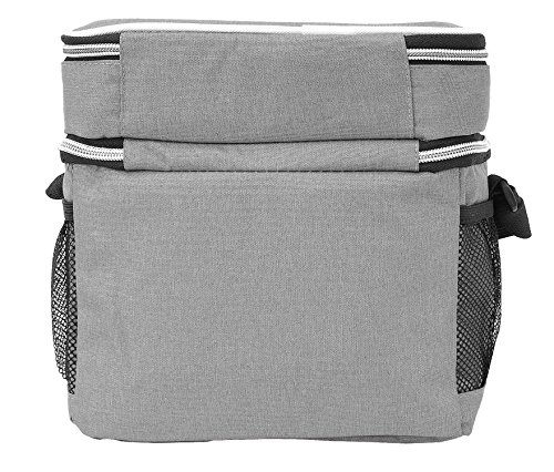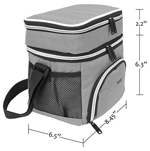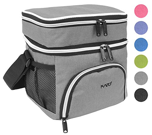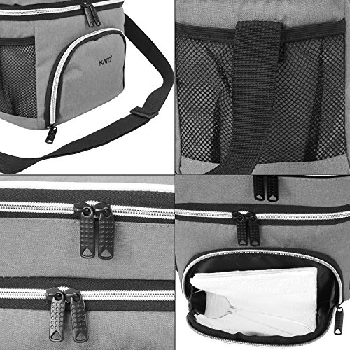 Kato Insulated Lunch Bag, Thermos Leakproof Bento Cooler Totes, Dual Compartment with Shoulder Strap, Front and Side Mesh Pockets, Gray