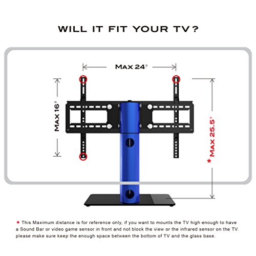 -. Title : OLLO: 30-55" Brushed Aluminum Universal Table Top TV Stand, 77Lb. Capacity, Rotation -/+45º, +10º Tilt, Safety Lock/lock Release, Anodized Finish, Limited Edition Blue, LED, LCD (TT-01 Blue)
