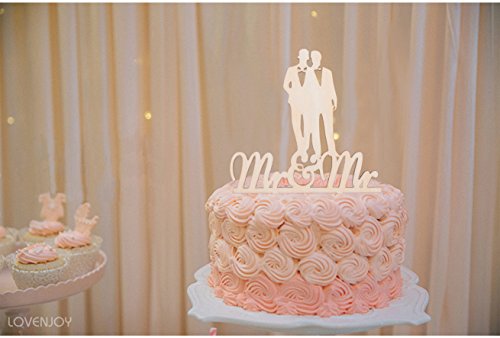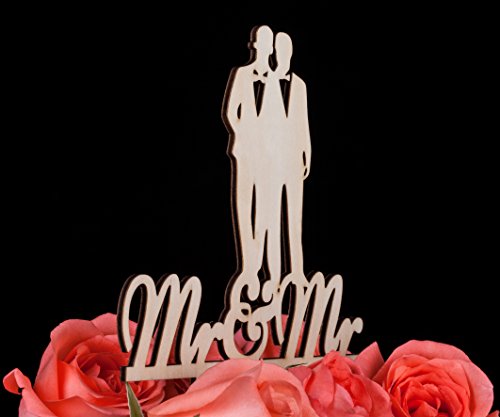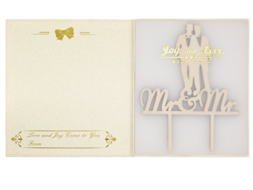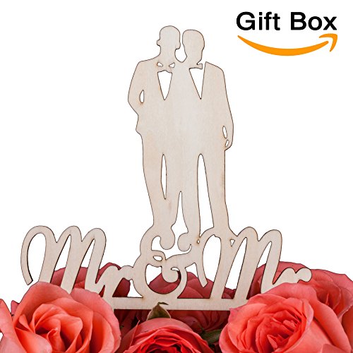 LOVENJOY - Gift Box - Wooden Mr and Mr Gay Wedding Cake Topper (5.1-inch)