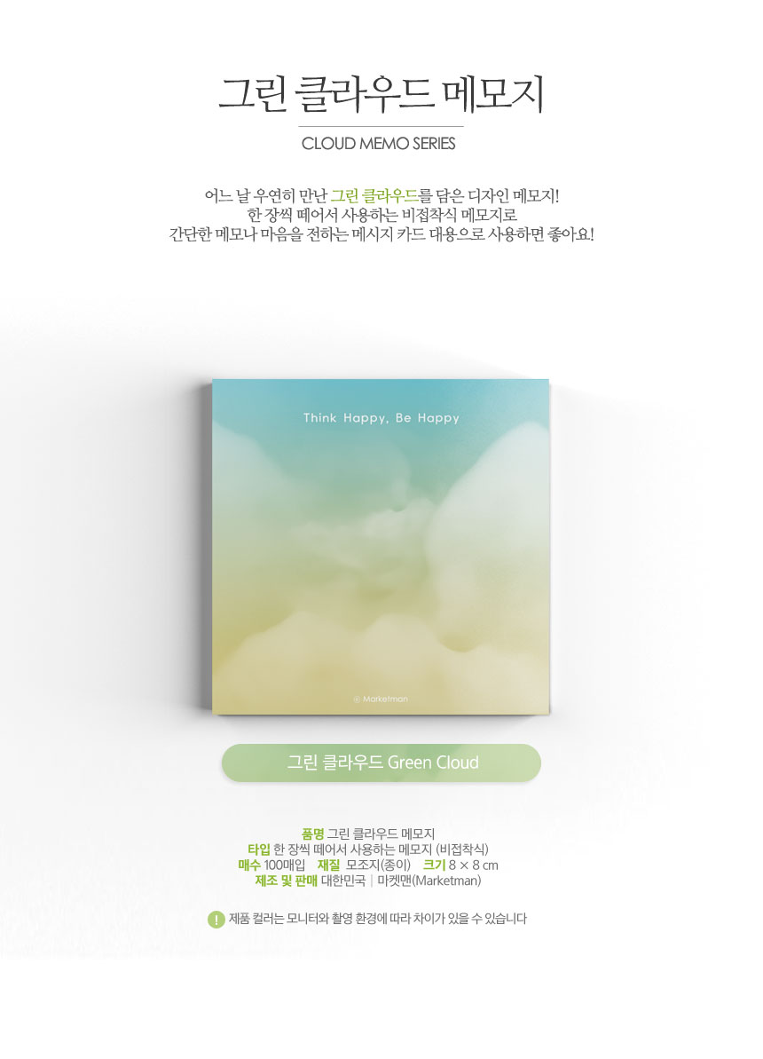 어느 날 우연히 만난 그린빛 클라우드 디자인 메모지
