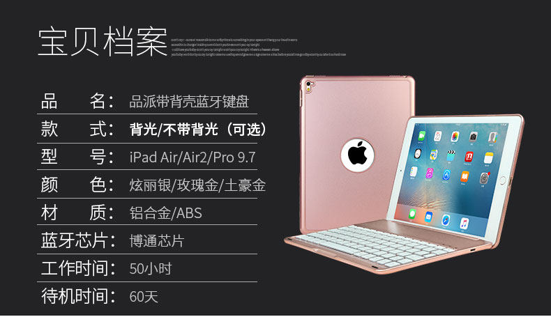 Bluetooth Keyboard With lighting For iPad Air/iPad Air 2/iPad 9.7 2017  23000
