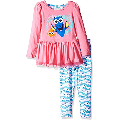 Disney Little Girls' 2 Piece Finding Dory Long Sleeve Top with Tulle and Legging Set, Pink, 6