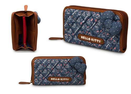 HELLO KITTY CHAMBRAY W/ BOW WALLET QUILTED PUFFY CHAMBRAY QIP AROUND WALLET WITH 3D PUFFY BOW. FAUX LEATHER TRIM AND NAME PLATE APPLIQUE. 8" x 4"