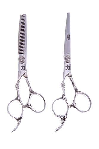 ShearsDirect Set of Left-Handed 6" Cutting And 6" 30 Tooth Thinning Shear with Flower Engraving Handle, 7 Ounce