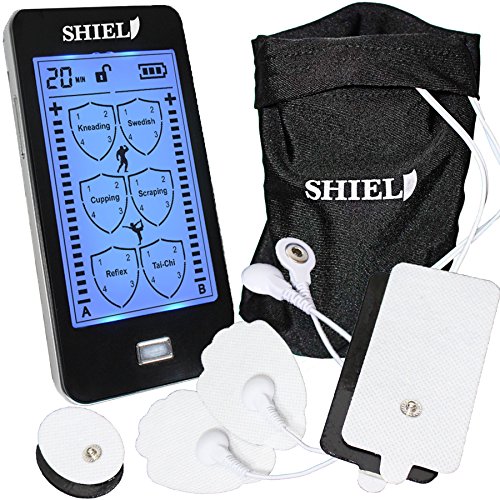 Studio : BrownCastle Publisher : BrownCastle Binding : Misc. Product Description The Shield TENS unit electronic massager is designed for a clinical setting with strength and quality in mind. This upgraded unit is the product of our customer's feedback. LED backlights for convenient viewing in the dark and expansive, easy-to-use LCD touch screen. Independent intensity control with each electrode port. Larger screen and more modes (24 total) to enhance your experience! With this FDA-Approved unit you have the freedom of therapeutic massage and pain relief anytime you desire. In this package you will receive the Shield Class IV Unit with 2x2 leads, two small massage pads, two medium massage pads, two large pads, an armband pouch, a usb/wall charger, and a user guide. 0