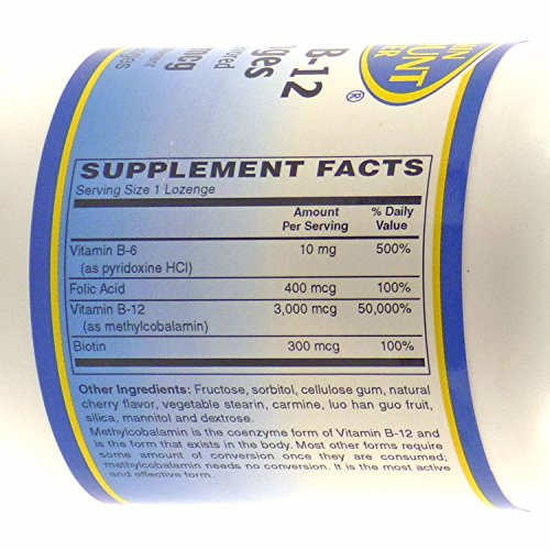 Studio : Vitamin Discount Center Publisher : Vitamin Discount Center Product Description Vitamin B-12 is a crucial vitamin which your body requires in order to function properly in common body processes and chemical reactions. Our Lozenge vitamin formula contains over 3,000 mcg of pure extracted vitamin B-12 to assure potency and effectiveness. With a natural cherry flavor you will be sure to love this vitamin supplement! Adults take one (1) lozenge daily, or as directed by a health care professional. These statements have not been evaluated by the Food and Drug Administration. This product is not intended to diagnose, treat, cure, or prevent any disease. 0