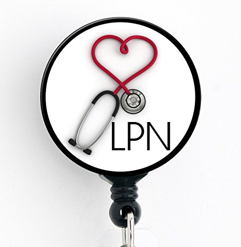 LPN Heart Stethoscope - Retractable Badge Reel With Swivel Clip and Extra-Long 34 inch cord - Badge Holder