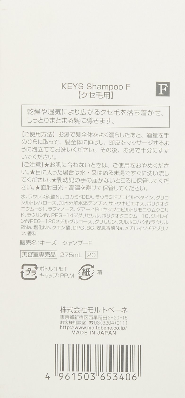 MoltoBene KEYS (Morutobene Keys) Shampoo F 275ml
