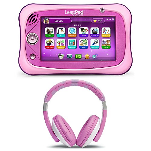 -. Feature : Educational bundle for kids age 3 to 9 years. / LeapFrog LeapPad Ultimate Pink includes tons of pre-loaded content featuring core skills in mathematics, reading and science as well as music, puzzles, logic and creativity to prepare kids for preschool and beyond! The tablet provides access to LeapFrog Academy, the new learning subscription service from LeapFrog. Features a built-in bumper, reinforced design and shatter-proof screen. / LeapFrog LeapPad Ultimate Pink features exclusive just-for-me learning technology built into many of the learning games, assessing your child as they play and automatically adapting the curriculum. Kid-safe right out of the box, with a kid-friendly web browser that provides access to pre-selected websites all approved by learning experts. / LeapFrog Headphones Pink provides quiet learning time for your little one. Padded headband and ear cushions add extra comfort. / LeapFrog Headphones Pink has adjustable headpiece accommodates growing kids. Works with LeapFrog LeapPad Ultimate.