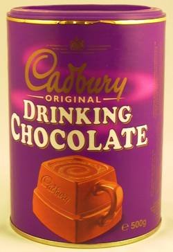 Cadbury Drinking Chocolate 500g. Cadbury Drinking Chocolate is a delicious hot chocolate drink. For that perfect cup sprinkle three heaped teaspoonfuls into a cup of hot milk and enjoy. Cadbury Drinking Chocolate is perfect any time of the day.