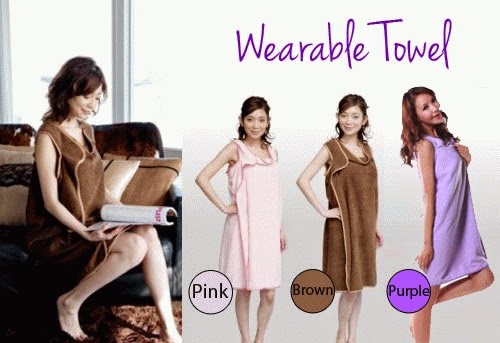 Wearable towel ialah handuk multi-fungsi yang bisa dipakai dalam berbagai cara. Selain berfungsi untuk mengeringkan badan, juga bisa dijadikan pakaian santai, pakaian untuk menggendong bayi. Dibuat dari bahan 100% cotton sehingga nyaman digunakan dan memiliki daya serap air yang tinggi