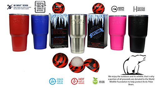 - ▶️️TRAVEL TUMBLER W/ ICE BALL MAKER (Choose "-With Ice Mold" option): Along with the portable travel tumbler you will also get an ice ball maker for great sphere shape! This tumbler comes with a 30 day, no questions asked, return policy and a LIFETIME GUARANTEE when registered on our website. OH YA! Did we mention a part of all proceeds are donated to the World Wildlife Foundation to save Arctic Polar Bears? Check out our full line of bulletproof drinkware today, click Arctic Steel above.