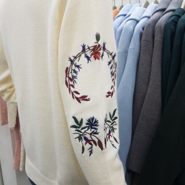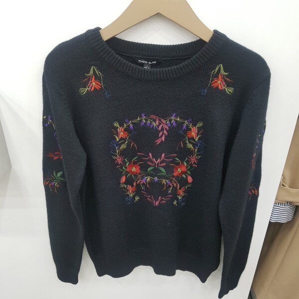 자수프린트니트에요^^ 기장감이나 품이 적당하게 나와 코디하기좋고 자수프린트가 밋밋하지않게 들어가있어 데일리하게 입기 좋아요^^