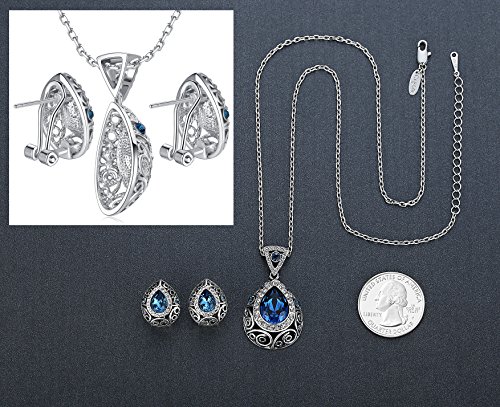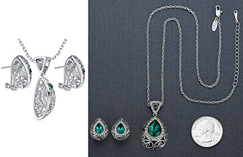 -. Title : [Presented by Miss New York] Leafael Swarovski Crystal Teardrop Filigree Vintage Style Jewelry Set Earrings Pendant Necklace, Silver-tone, 18" + 2", Nickel/Lead/Allergy Free, Luxury Gift Box