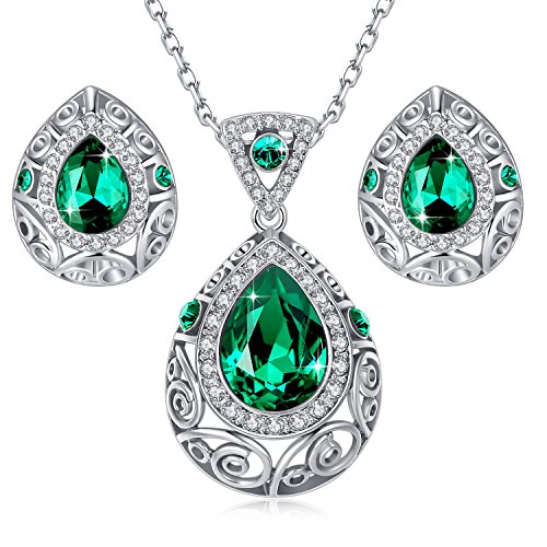 -. Feature : SPECIFICATIONS - 1) Pendant Size: 1.5" x 0.8" 2) Earring Size: 0.6" x 0.5" 3) Chain Length: 18" + 2"extender 4) Chain: White Gold Plated Vintage Silver-tone Alloy Chain 5) Clasp: Lobster Claw 6) Stone: Swarovski Element Austrian Crystal, Pear Shape Teardrop Stone 7) Earring Hooks: Omega Clips / VINTAGE TEARDROP DESIGN WITH SWAROVSKI CRYSTAL - At Leafael, our collections are made with finest quality and authentic crystals from Swarovski. These glittering crystals shimmer with the slightest movement and sparkle even in the lowest light settings. This unique white gold plated jewelry set features a teardrop design with top quality Swarovski crystal at center, wrapped by vintage filigree border adorned by smaller Swarovski zirconia, creating a mysterious picture of a foreign culture. / PRESENTED BY MISS NEW YORK - Dress in style with Miss New York Nicole Kulovany! We are very glad to have Nicole be the face of our jewelry line. Both Leafael and Nicole share the same fashion principle - a practical style with a mix of looks - classy, hippie, sexy, whatever that honors a woman's true self at that moment! And Leafael Jewelry, with its colorful designs and intense structural complexity, will make you rock every look and glow in every occasion! / NICKEL/LEAD/ALLERGY FREE - Leafael Jewelry prides itself on meeting strict health standards; our jewelry is perfectly safe to wear and won't cause any allergy or irritation to your skin. We also try to protect vulnerable regions of the planet by using environmental friendly material for our jewelry. Our brand name Leafael, which integrates word leaf both backwards and forwards, was inspired by our environmental principles. / LUXURY GIFT BOX - Each Leafael Jewelry piece is packed with exclusively elegant white, silver-embossed jewelry gift box protection as well as the much needed aesthetics. This ensures its safe transport and a gorgeous presentation as a gift for her - your mother, daughter, wife, fiancee, sister, girlfriend and bridesmaid for Christmas, Valentine's Day, Mother's Day, birthdays, weddings and graduations.