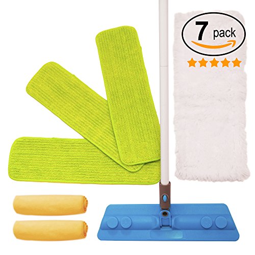 Bear Family 18 Inch Microfiber Mops with Handle for Wet and Dry Floors with 2 Bonus Cloth - Pack of 7 (Green)