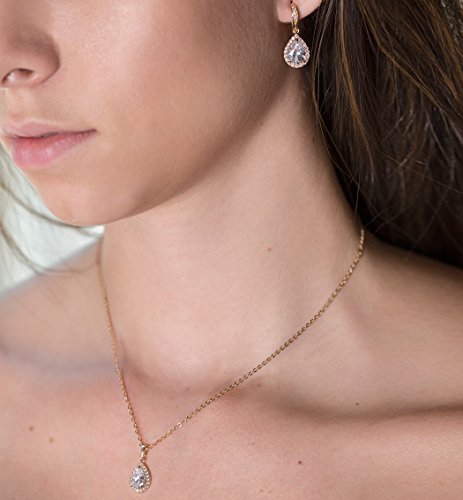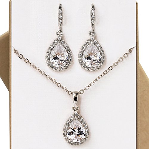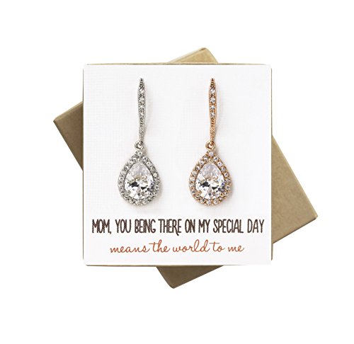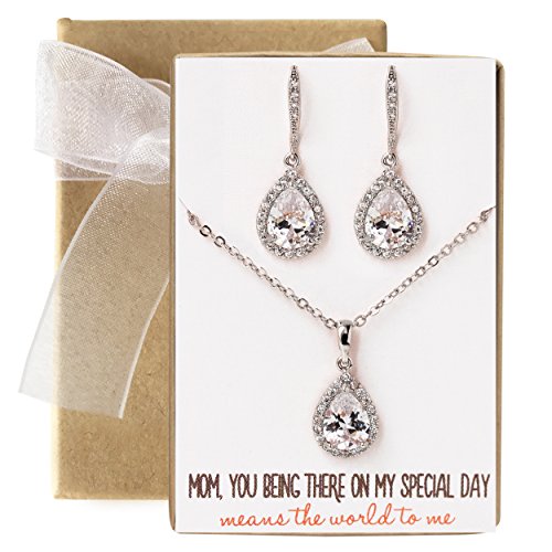 -. Feature : 14K White Gold, Gold or Rose Gold finish, Cubic Zirconia with surrounding CZ crystals / Fish Hook Earrings H 1.2 in (3 cm) x W 0.5 in (1.3 cm), NECKLACE Chain length 18 in (45 cm), Pendant H 0.75 in (2 cm) x W 0.4 in (1 cm) / Hypoallergenic, lead & nickel free / Included: "Mom, having you there.." card, gift box (L 3 in x W 2.25 in) & ribbon. Perfect for gift giving! / Great for special occasions: wedding/bridal party jewelry gift, mother of the bride, mother of the groom, MOB, MOG