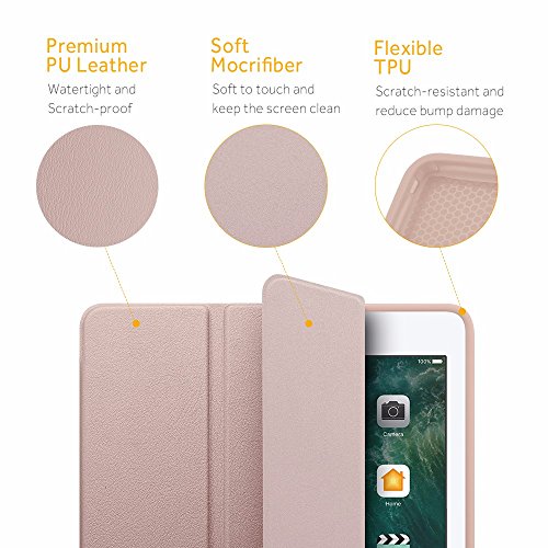 iPad 9.7-inch Case (New 2017 Model) - EasyAcc Cover Case for iPad 9.7 2017 with Unique Reversible Branching Design with Stand / Auto Sleep Wake-up Function - Pink, Premium PU Leather