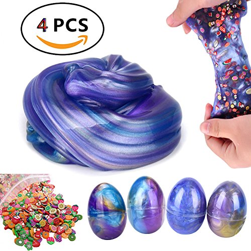 Super Fun Clear Egg Crystal Slime on Instagram -- A kind of hand mud, 4 pack (2 oz each, 8 oz total) accessories DIY Slime with a pack of Fruit Slices toy as a free gift. It is incredibly satisfying to play with - squeeze it, smash it or create arts with it. Just use your imagination freely. So smooth, stretchy & spreadable, soft hand feeling can give you the most wonderful slime experience, you will fall in love with this slime.