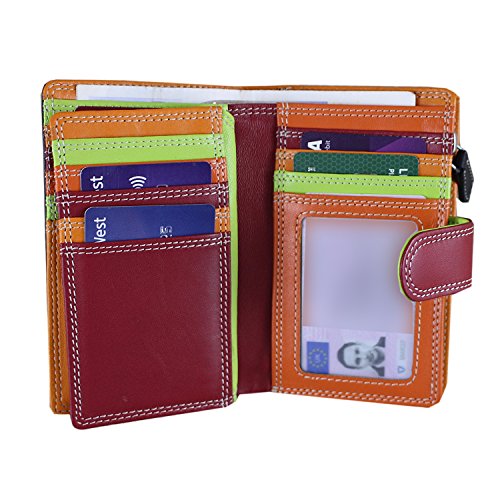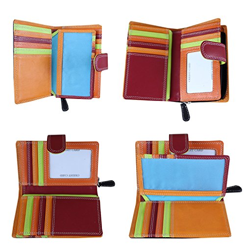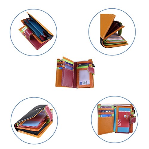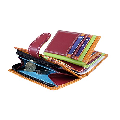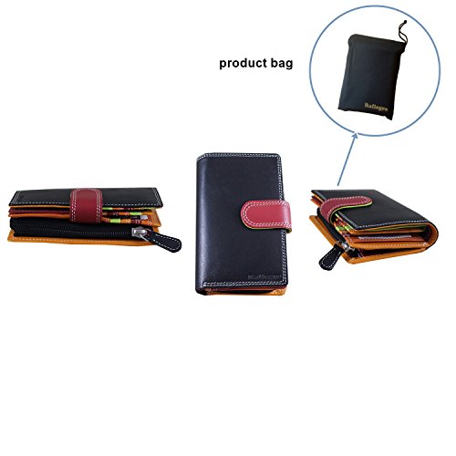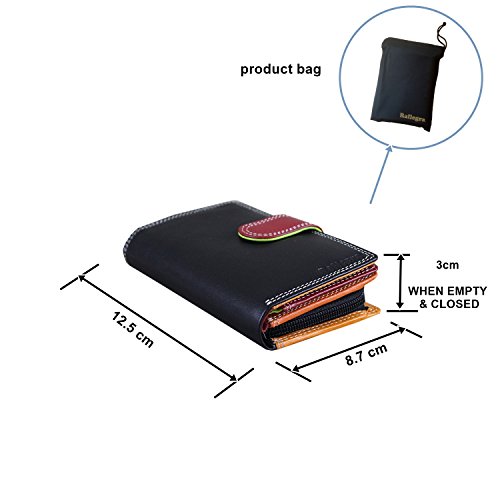 Best purse wallet for women, small hand-stitched multi colored multi fall purse wallet – double stitched throughout, black outside with a smart red loop for closure and a beautiful array of colors inside. Large coin compartment, and RFID blocking technology and delivered in a smart product gift bag as per the pictures