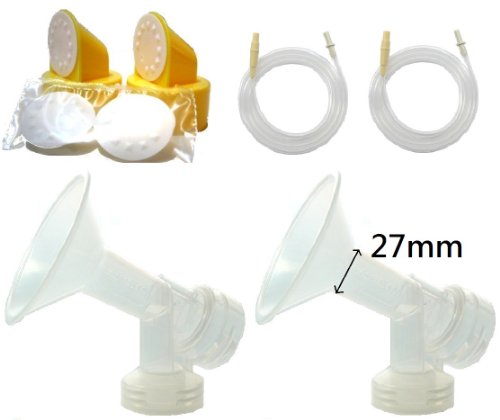 This product is designed to use with old Medela Pump-In-Style Advanced breastpump, released before July 2006. It contains 2 breastshields, 2 valves, 4 membranes, and 2 pump-in-style tubing. The tubing has adapters on both ends. The breastshield is designed in one-piece, and thus, have better suction than 2-piece ones. In addition, we give you extra membranes so you can have replacement when existing ones break. NeneSupply breastshield can be connected with Medela storage bottles, and is 100% compatible with Medela valve and membrane. You may attach your own Medela valve onto NeneSupply breastshields, or you can also purchase spare NeneSupply duckbill valve on Amazon. For best protection and hygiene, all items are packaged in corrugated carton, sealed by manufacturer.Feature
