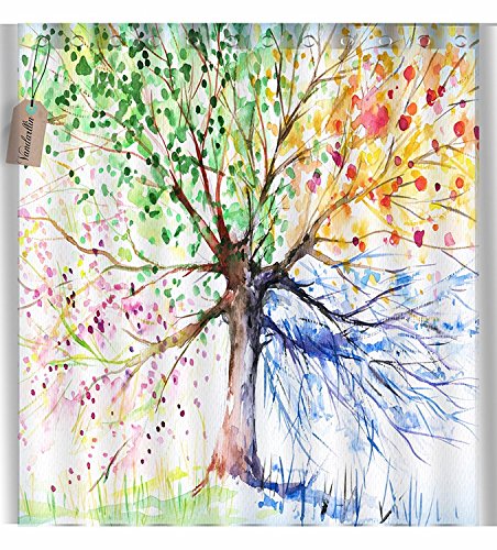 Colorful Tree Art Print Four Seasons Shower Curtain, 84 Inches Extra Long, Polyester Fabric, Bath Decorations Bathroom Decor Sets with Hooks