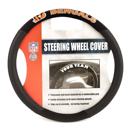 Ride like the wind while you're showing your support with this slip-on steering wheel cover from Fremont Die. It's decorated in the team colors, made of poly-suede and mesh and designed with the team name and logo. Designed with a snug fit to prevent slipping.