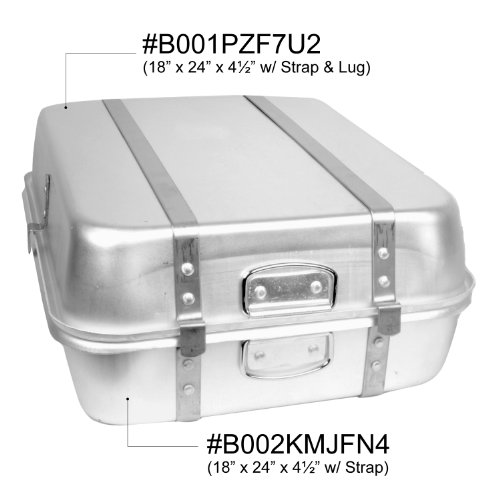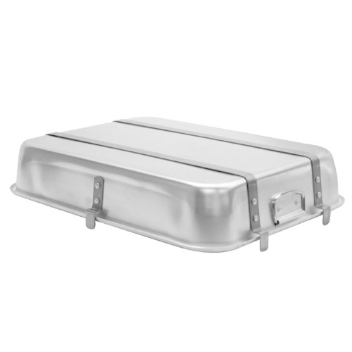 Studio : Thunder Group Publisher : Thunder Group Binding : Kitchen Product Description Aluminum roasters with strap and lug for secure and spill proof roast. Two durable handles on the front and back to allow level transport. Made with rounded corners and smooth surface for easy cleaning. Size: 28" x 24" x 4 1/2" 0