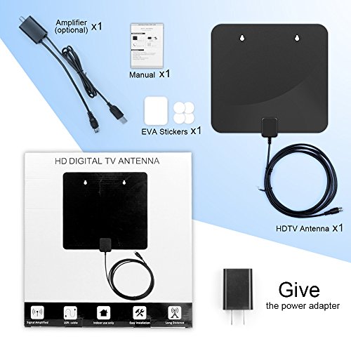 Studio : Narblly Publisher : Narblly Binding : Personal Computers Product Description Digital Antenna FAST AND EASY SET UP WITH 3 STEPS: 1.Stick the antenna on the window/wall/lay flat on the table 2.Connect the antenna to 'ANT IN' on the back of any digital-ready TV or the set-top box. 3.Scan Channels by selecting 'Menu' then 'Channel Search' and enjoy your free TV. A very easy and time-saving step ,you can start to use this TV Antenna .Set it on a windows ,wall or better position where owns better reception of your house .You can start to watch now Indoor HDTV Antenna 50-80 Mile Long RangeSuggested splitter Enjoy crystal clear HDTV shows ,720p ,1080i ,1080p|ATSC available. Kindly Note ◆The actual receivable range may highly dependents on your distance and location.Areas with large obstructions such in valleys, mountains,etc,. will reduce effective range. Always re-scan channels after moving the indoor antenna, the result may be better. ◆You can Remove the Detachable antenna amplifier if your house is within 20 mile range from the tower. We do NOT Recommend to use this amplifier or booster if your house is very close to the broadcast tower and the signal is already very strong. If your Indoor TV antenna is not working as expected, try the following tips: 1, Check to make sure you have correctly connected the antenna to your HDTV or third-party HD receiver. 2, Re-scan for channels: In the TV's setup menu, set the mode to indoor antenna or air. Refer to the TV manual for detailed instructions. 3, Reposition the amplifier antenna in a different location. Sometimes moving a few feet can make a difference. 4, keep the indoor antenna away from those big power consumption devices interference, such as air conditioner, refrigerator and microwave oven ,etc. 5, This is an amplified TV antenna. If a signal cannot be received with the external amplifier, remove the antenna amplifier and try again. 0