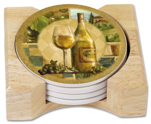 CounterArt Italian Wine Absorbent Coasters in Wooden Holder, Set of 4
