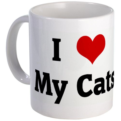 -. Brand : CafePress -. Feature : 11oz White Ceramic Mug. The perfect size for your favorite morning beverage or late night brew. / Large, easy-grip handle. / Treat yourself or give as a gift to someone special. / Measures 3.75" tall, 3" diameter. / Dishwasher and microwave safe. -. Label : CafePress -. Manufacturer : CafePress -. MPN : 128014958 -. PartNumber : 128014958 -. ProductGroup : Kitchen -. ProductTypeName : KITCHEN -. Publisher : CafePress -. Size : 11 ounce -. Studio : CafePress -. Title : CafePress I Love My Cats Mug - Standard Multi-color