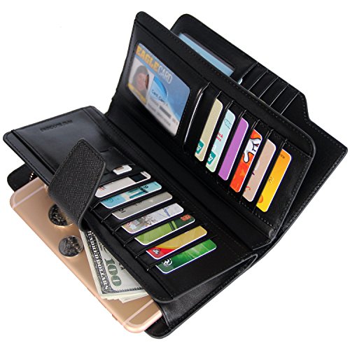 Title : Alavor Women RFID Blocking Trifold Wallet Long Clutch Credit Card Organizer Large Capacity Purse (Black)