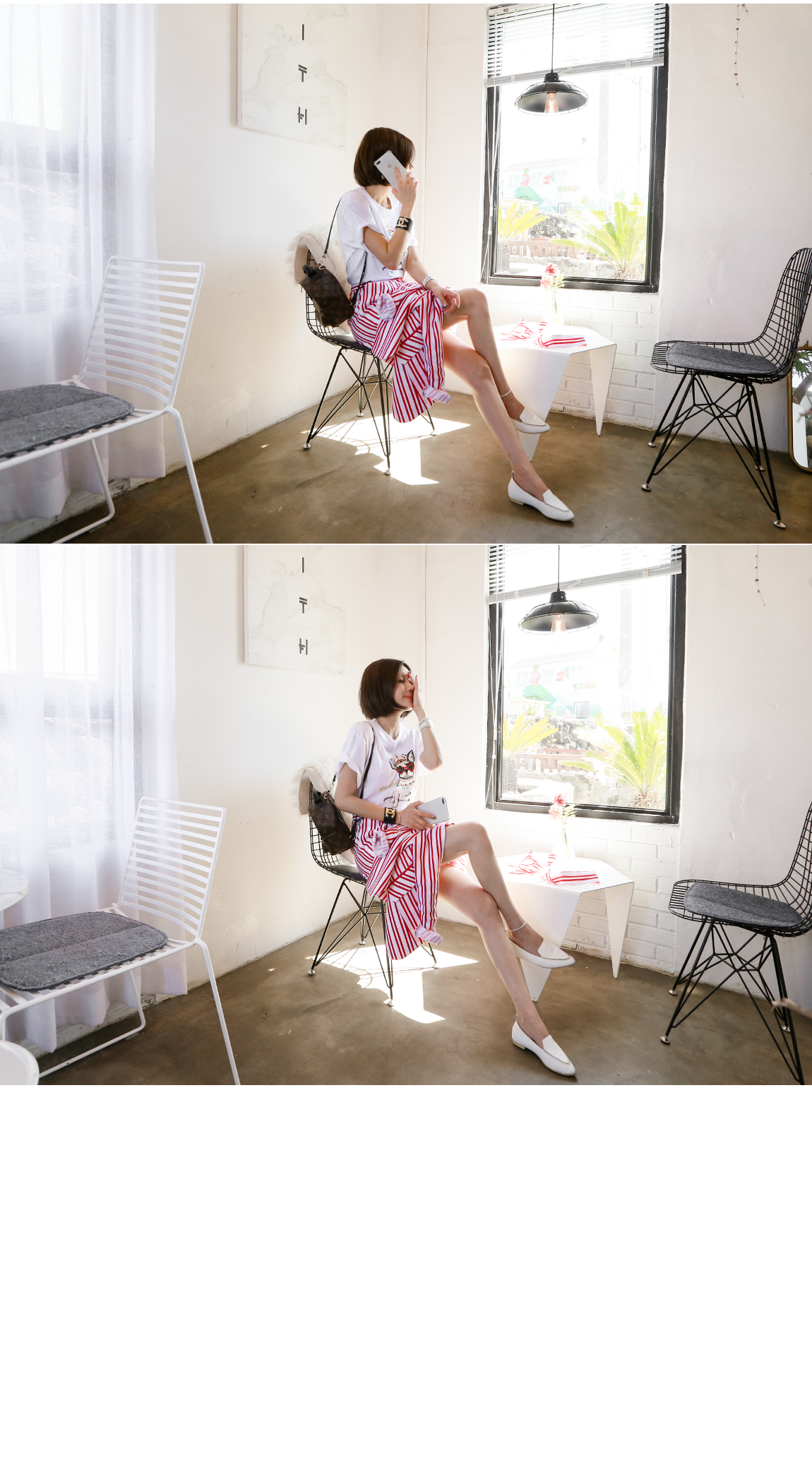 全体的であるストライプパターンでレッグ・ラインが長く見えるように作ってくれながら