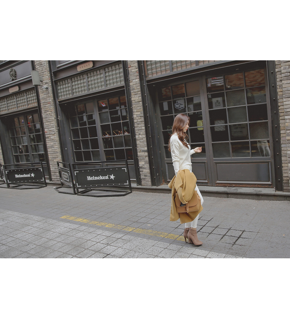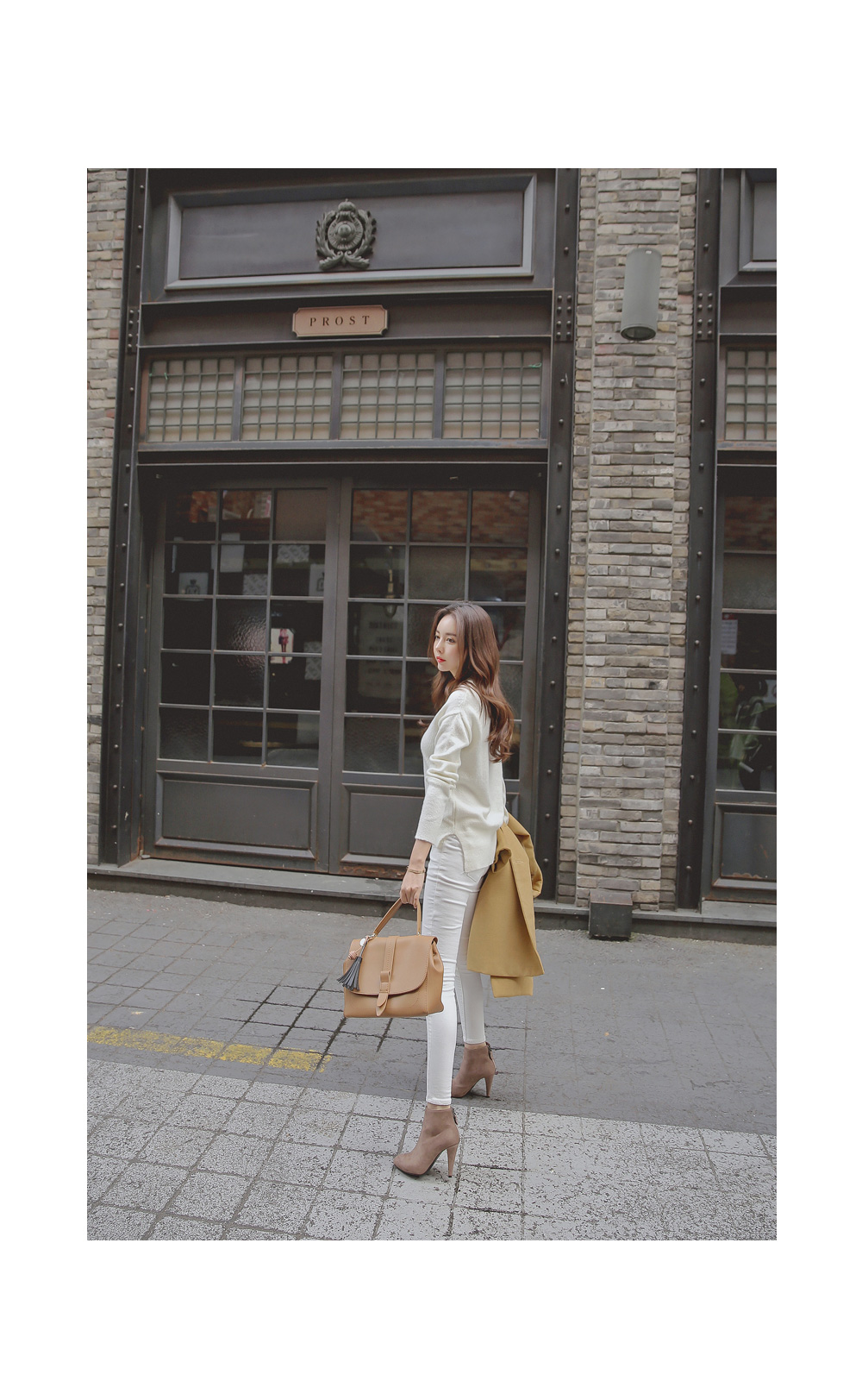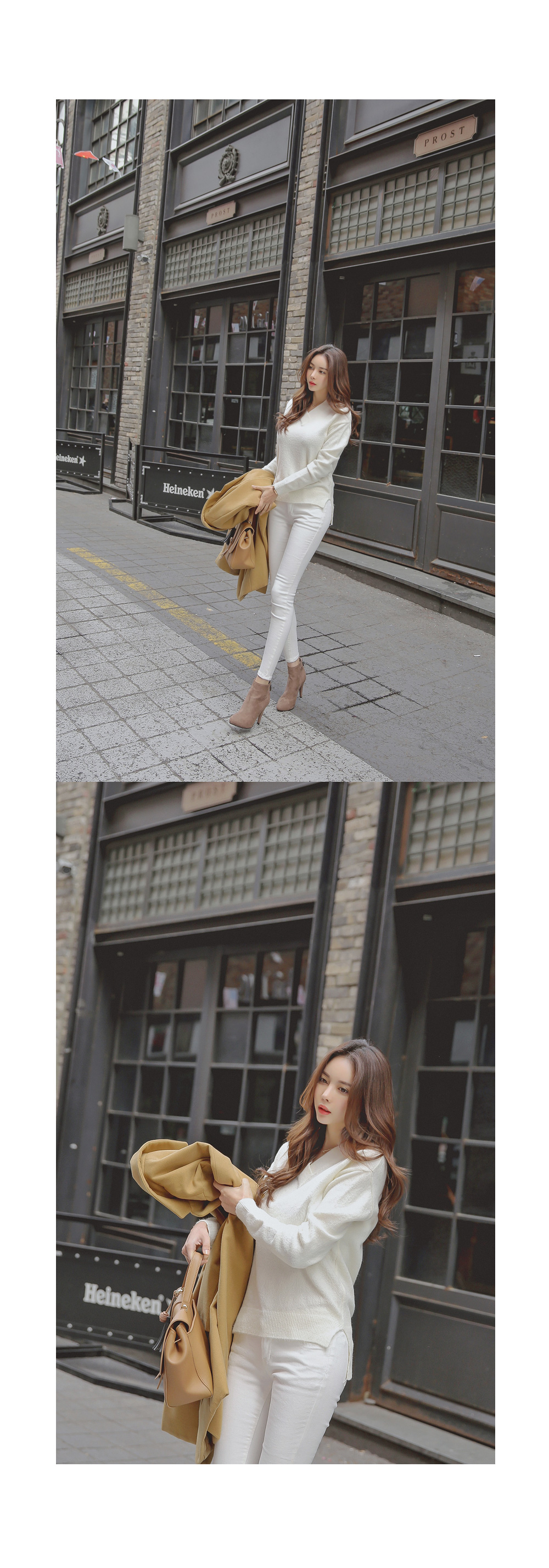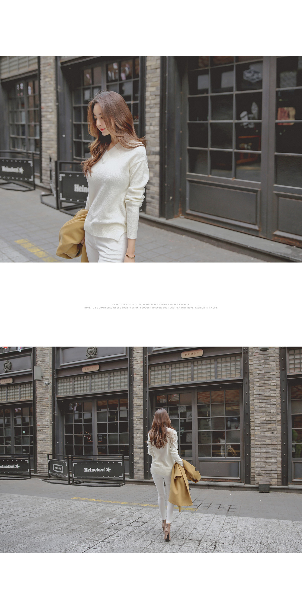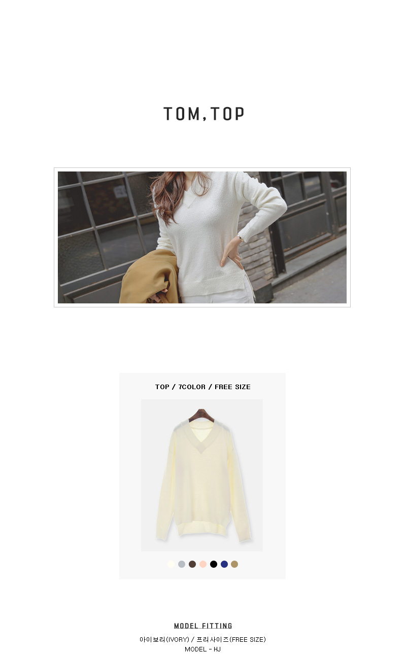 세련된 브이넥 디자인으로 쇄골라인을 더욱 에쁘게 연출해주며 자켓이나 코트 안에 이너티로 활용해도 잘 어울려요.