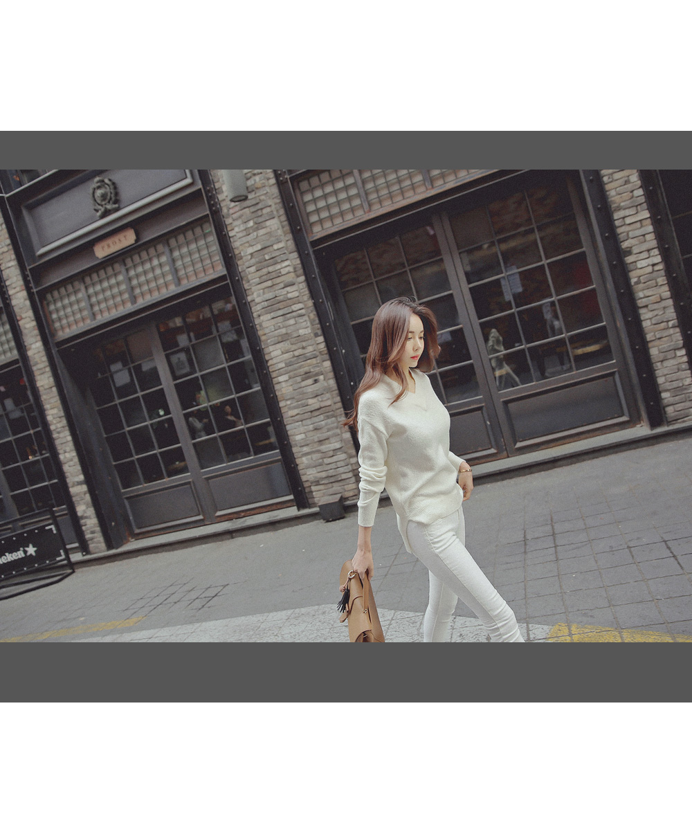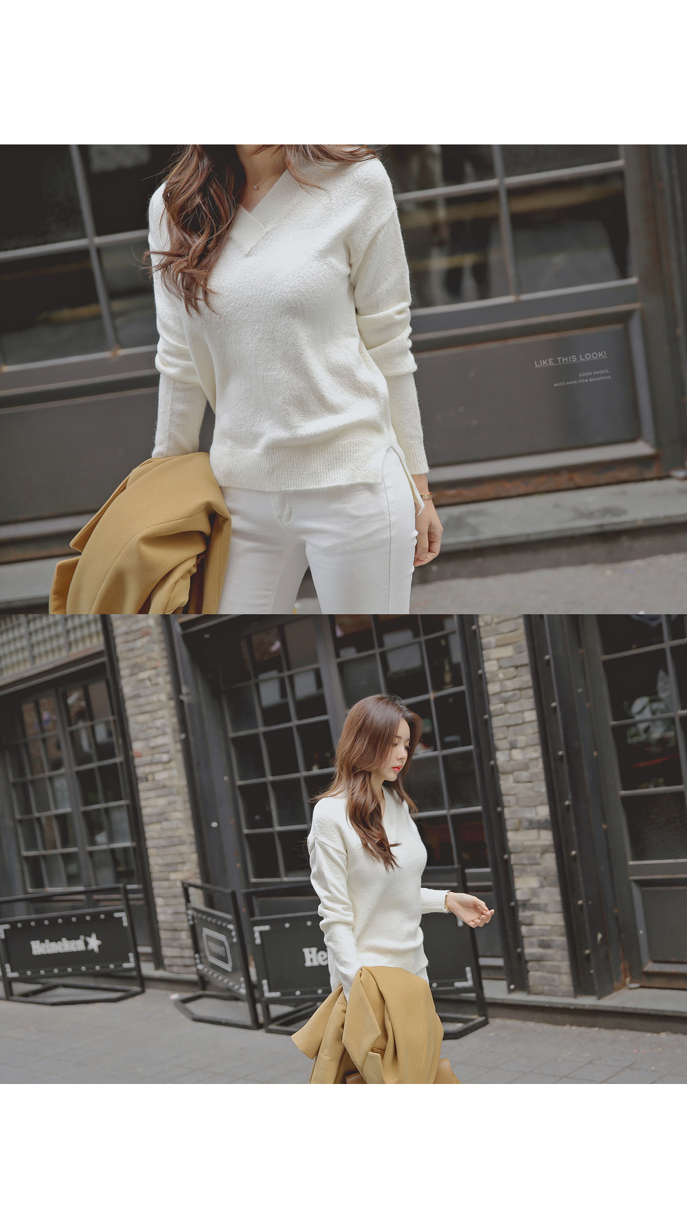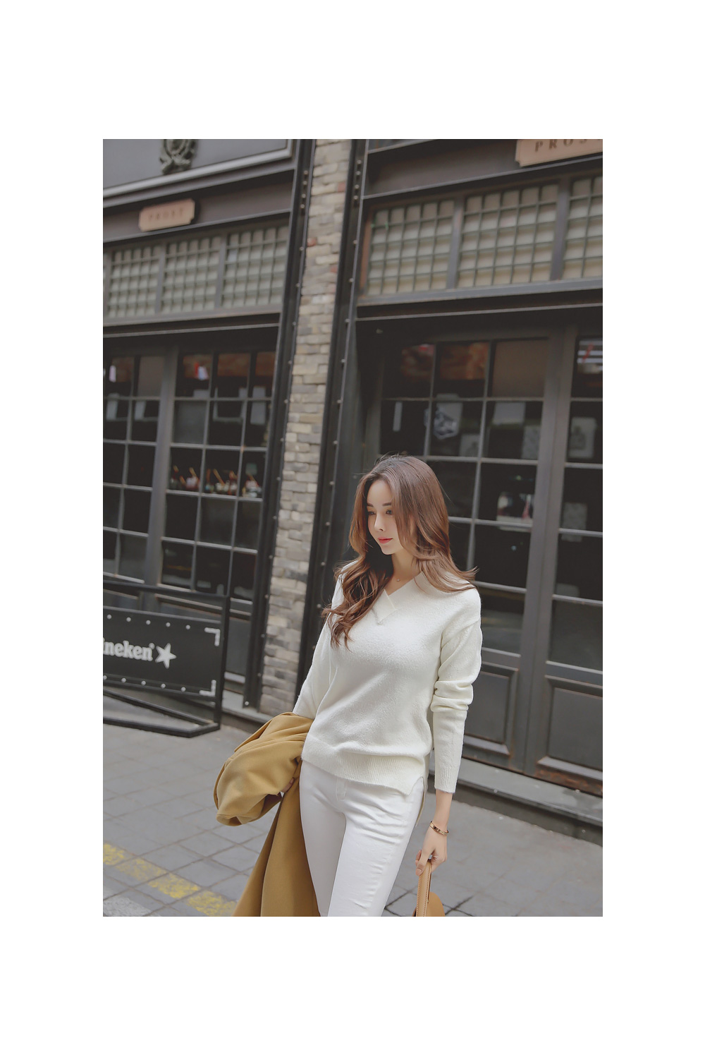 베이직한 무드의 브이넥 니트를 소개합니다.