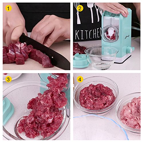 - ✔MINCED MEAT AND VEGGIES IN NO TIME: The manual mincer will mince your meat, vegetables, herbs and beans in no time just by turning the crank. Use the minced meat for delicious homemade burgers and meatballs or use our sausage funnel to make healthy sausages at home for your family.