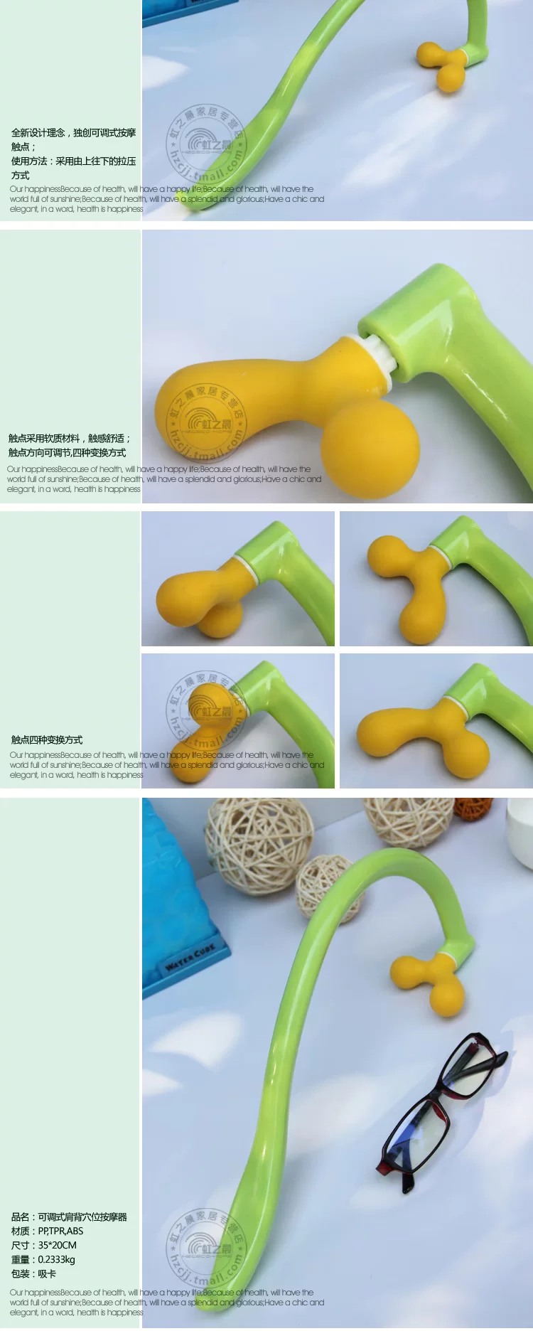 Adjustable shoulder beat acupressure, massage contacts with a new adjustable design, the freedom to choose a point or two presses can also be used to beat back, to achieve different massage effect!