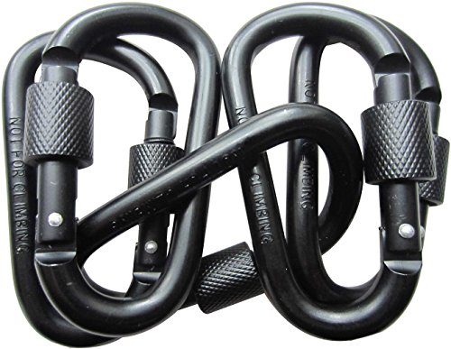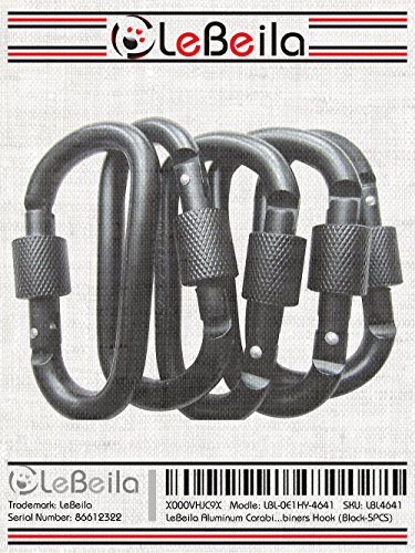 LeBeila Aluminum Carabiner Heavy Duty Climbing Hooks D Shape Buckle Pack Spring Snap Keychain Clip with Screwgate Locking-Outdoor Camping D-ring Carabiners Hook (Black-5PCS)