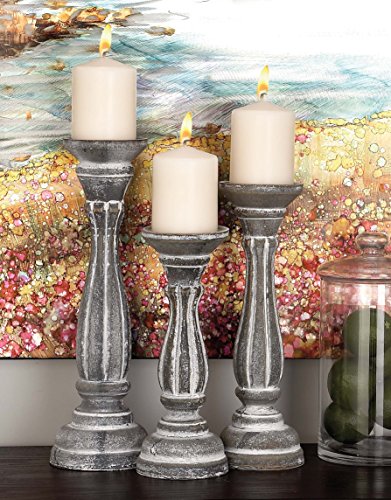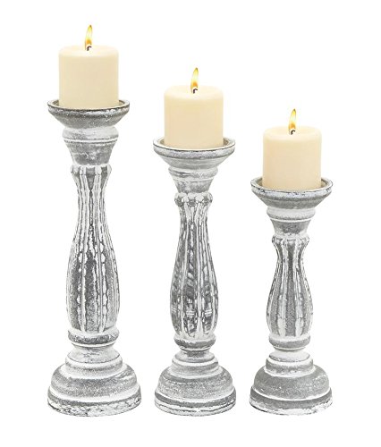 Deco 79 Wood Candle Holder, White, 15 by 13 by 11-Inch