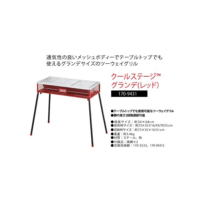 원본상품명: コ?ルマン コンロ ク?ルステ?ジグランデ レッド 170-9431 [5~6人用]