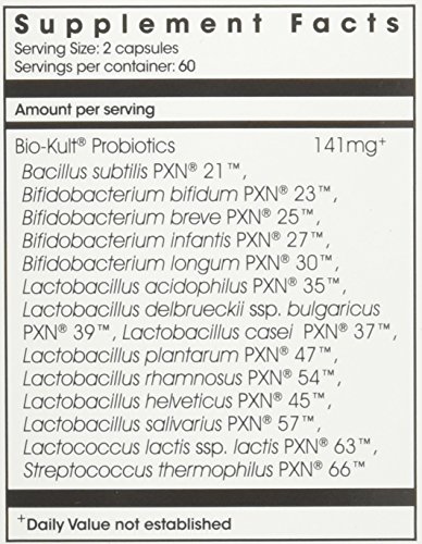 Bio-Kult is a multi-strain probiotic containing 14 strains of probiotics for everyday use. The beneficial bacteria in Bio-Kult are cry protected during the freeze drying process which means they are protected from the harsh acid environment of the stomach and are therefore able to colonies the full length of the gastrointestinal tract. Also the process allows Bio-Kult to be stored at room temperature without needing to be refrigerated. Bio-Kult can be used on a continuous basis or for short periods of time.Feature