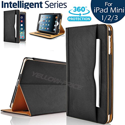 iPad Mini 3 Case, iPad Mini 2 Case, iPad Mini Cover, Yellow-Price Folio Tan Leather Wallet Case Smart Stand Cover with Auto Sleep / Wake Feature for Apple iPad Mini 1/2/3, Flip Wallet Case Design