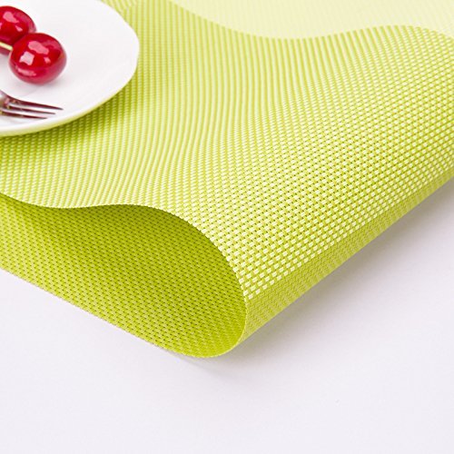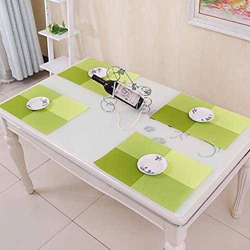 Table Mat iAnko Washable Environmental PVC Checkered Pattern Mats Heat Adiabatic Pad Placemats Set of 4 (Green)