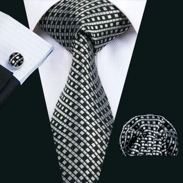 | [해외]LS-1453 배리. 좋아서 클래식 남성 넥타이 100% 블랙 참신 실크 목에 두르는 손수건 커프스 세트 남성 웨딩 파티 비즈니스 |