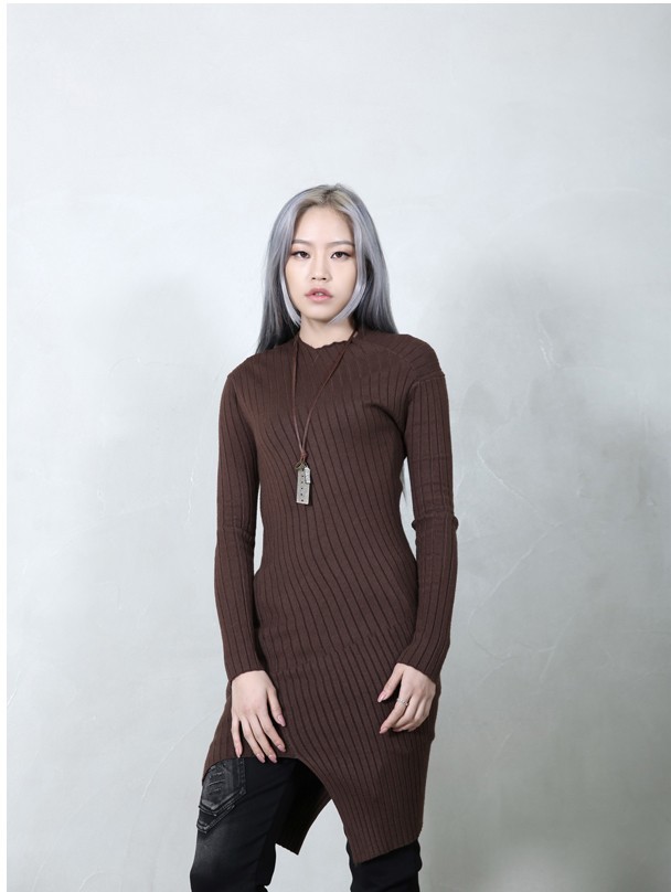 商品名:ニット レディース ロング丈 トップス 無地 長袖 秋 冬 2017 モード系 個性的 40代 ファッション