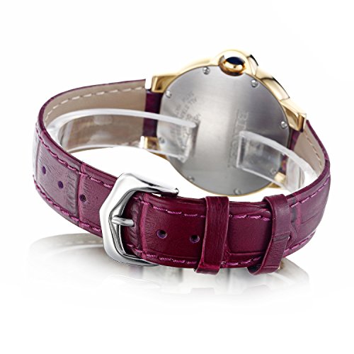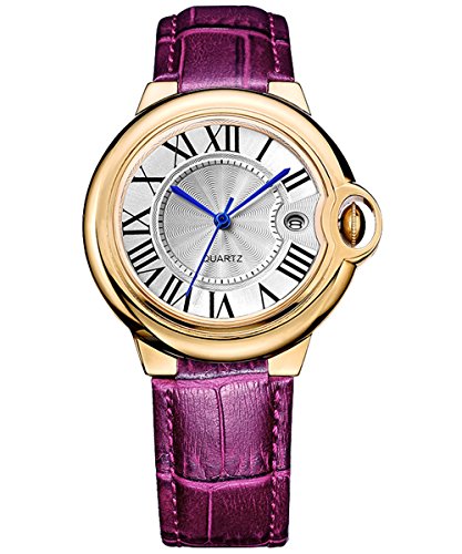 Stitched purple alligator grain embossed calfskin leather band with delicate crown-shape buckle