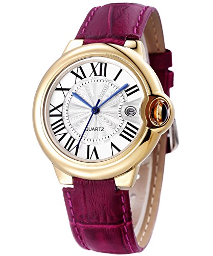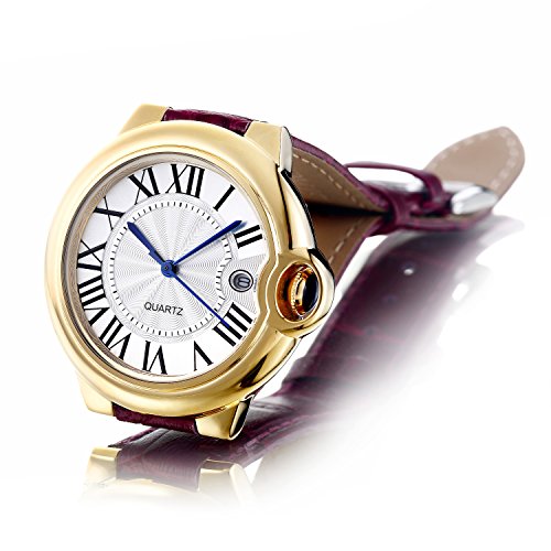 Round watch featuring white copper dial with Roman numerals, cobalt blue hands and date display