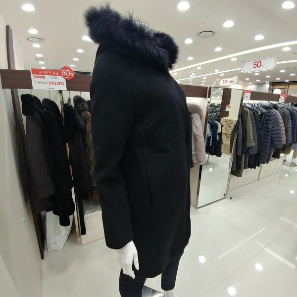 야크.앙고라 모.혼방소재로 따뜻하고 폭스후드카라로 더욱 력셔리한 코트입니다.